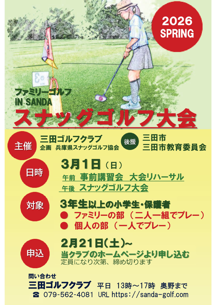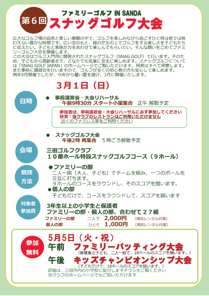 3月1日(日)、3年生以上の小学生を対象とした『スナッグゴルフ大会』を開催いたします。