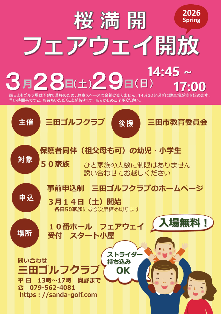 2026年3月28日(土)・29日(日)の2日間、三田ゴルフクラブの10番ホールフェアウェイを一般開放いたします。